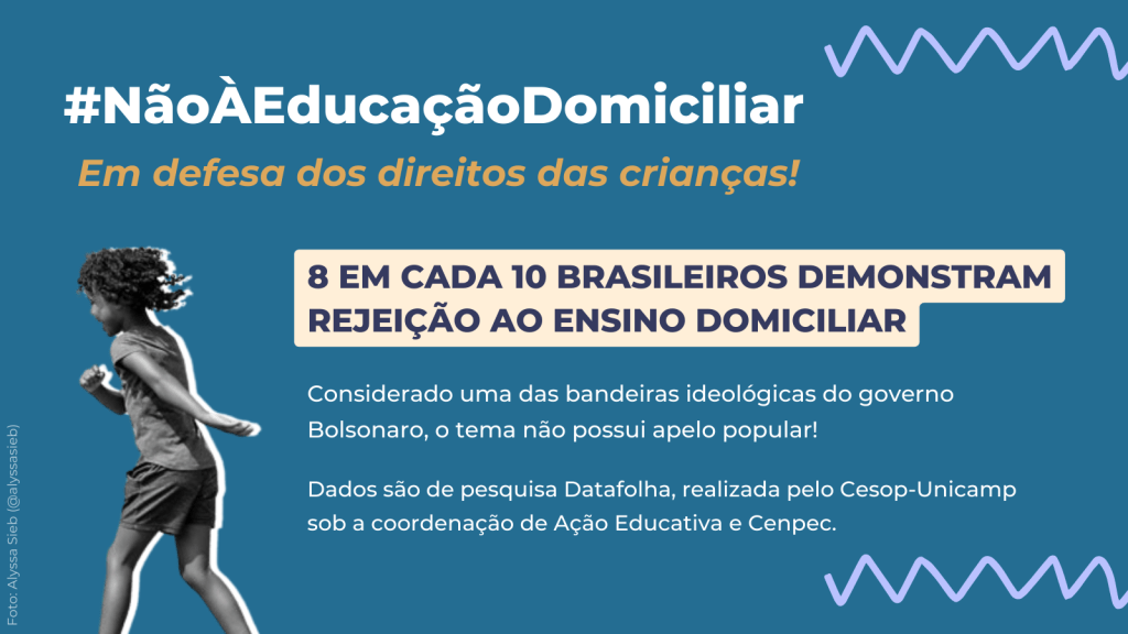 A pesquisa nacional Educação, Valores e Direitos revelou que a maioria dos brasileiros não é favorável ao ensino domiciliar. Coordenada pelas organizações Ação Educativa e Cenpec, a pesquisa inédita foi realizada pelo Centro de Estudos em Opinião Pública (Cesop/Unicamp) e Instituto Datafolha, no marco da articulação de organizações da sociedade civil em defesa do direito à educação e contra a censura nas escolas. Foram ouvidas 2.090 pessoas em todo o país sobre questões consideradas polêmicas relativas à política educacional. Outros dados da pesquisa serão divulgados nas próximas semanas. A realização da pesquisa contou com recursos do Fundo Malala.