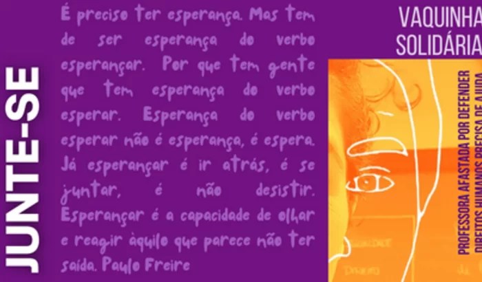 Nesse momento, a urgência maior é entrar com uma liminar para ter uma chance de reverter a decisão pela exoneração. O prazo para entrar com esse mecanismo está perto do fim. Meire é uma professora que precisa ser defendida e abraçada. No momento ela precisa de apoio financeiro pra custear isso.